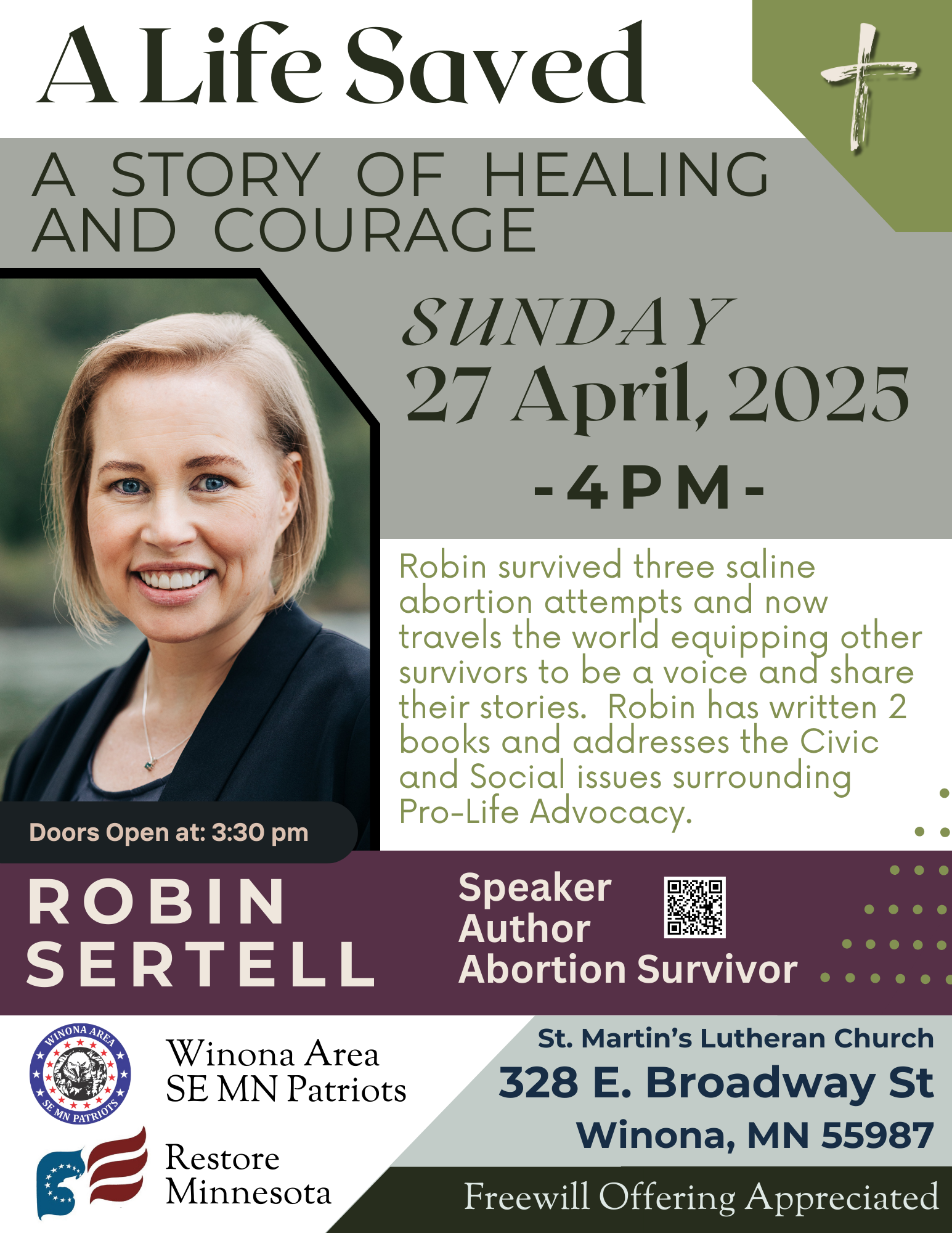 Robin survived three saline abortion attempts and now travels the world equipping other survivors to be a voice and share their stories. Robin has written 2 books and addresses the Civic and Social issues surrounding Pro-Life Advocacy.