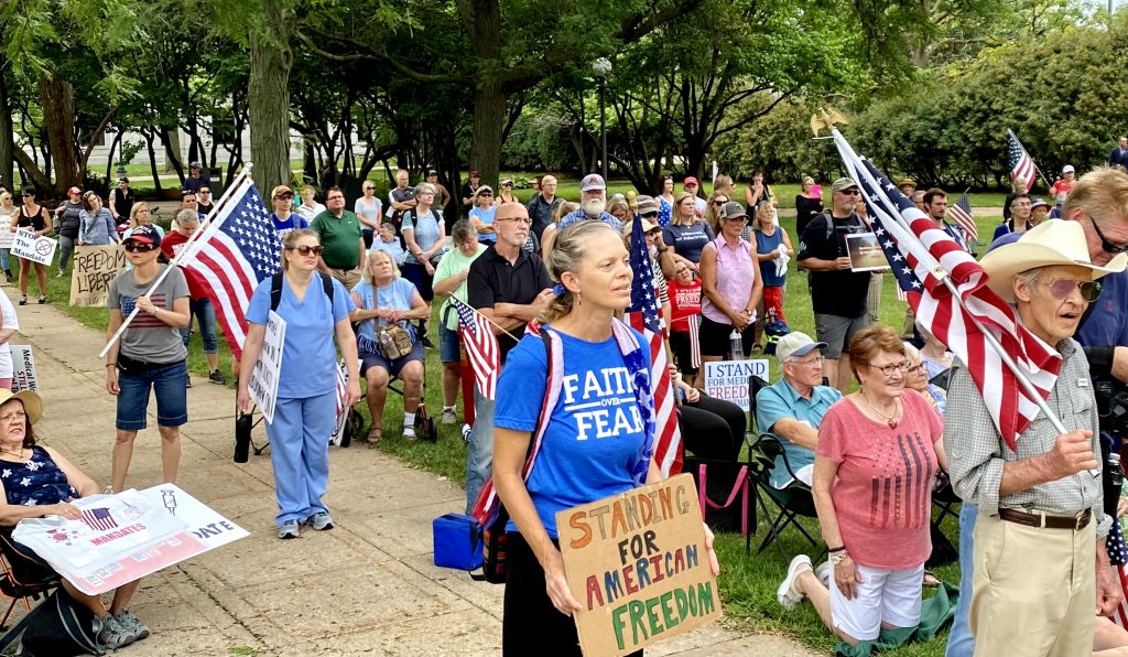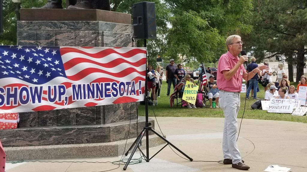 Roughly 500 God-fearing American patriots “showed up” to the Minnesota state capitol on a beautiful August morning to support the many Minnesotans in the medical and governmental fields who are being faced with the unconscionable illegal, immoral, unethical and unconstitutional mandates by government and corporate bullies demanding these men and women receive the extremely controversial vaccines related to the pandemic.