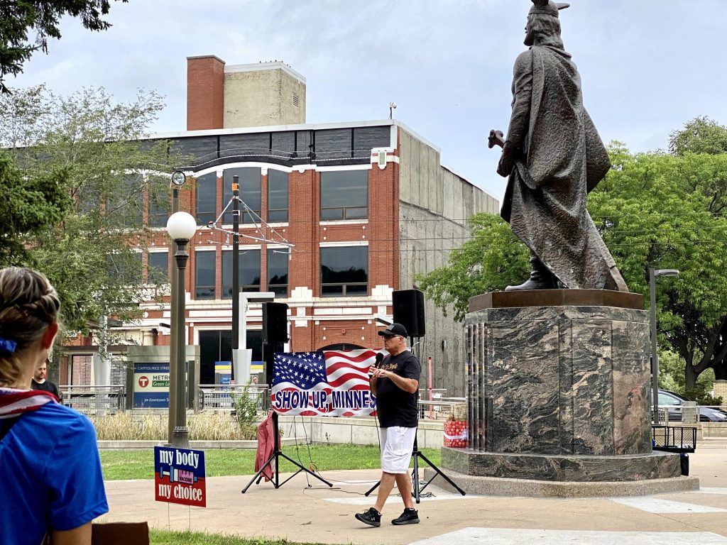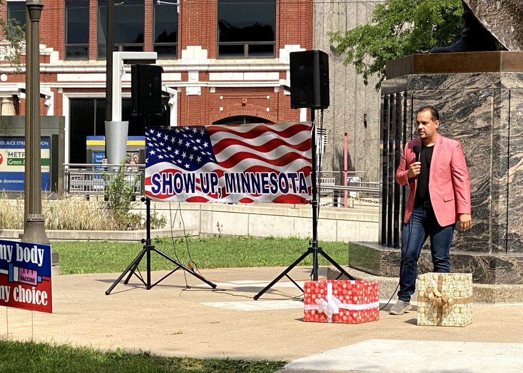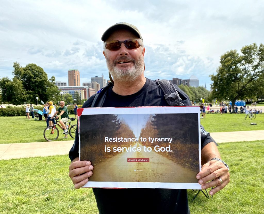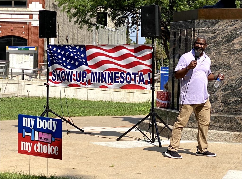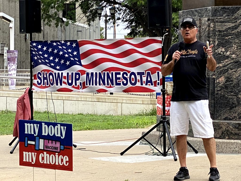 The event titled, “Show Up, Minnesota!” was the brainchild of Dale Witherington, Chief Steward of Restore Minnesota. Witherington noted the purpose of the event was not to be pro or anti vax. Instead, the purpose was to support those facing the outrageous, unreasonable and unjust ultimatums to get “vaccinated” with an experimental combination of unknown-to-the-public chemicals and who-knows-what other ingredients, and to bring to light the broader issue of a tyrannical government partnering with corporate intimidators who believe they can mandate an individual’s personal healthcare choices at the risk of losing their source of income, which for many would be devastating to their families in light of the ridiculously prolonged lockdown during 2020-2021.
