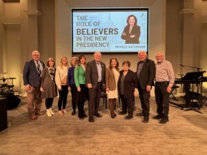 Restore MN was honored to work with a number of area groups to host former Congresswoman Michelle Bachman to come and speak to Minnesotans about what role as believers we can play in this new presidency. It was a wonderful evening of prayer, worship, and encouragement. Bachman’s number one piece of advice was to PRAY. Pray for our President, his advisors, our leaders on all levels, and America as a whole. With Freedom comes responsibility. Our responsibility is to live out our faith and values daily. Thank you to all who came to intercede in prayer for America, to Living Word for hosting the meeting, and Michelle Bachman for her time and motivational encouragement. May the Lord be Praised!